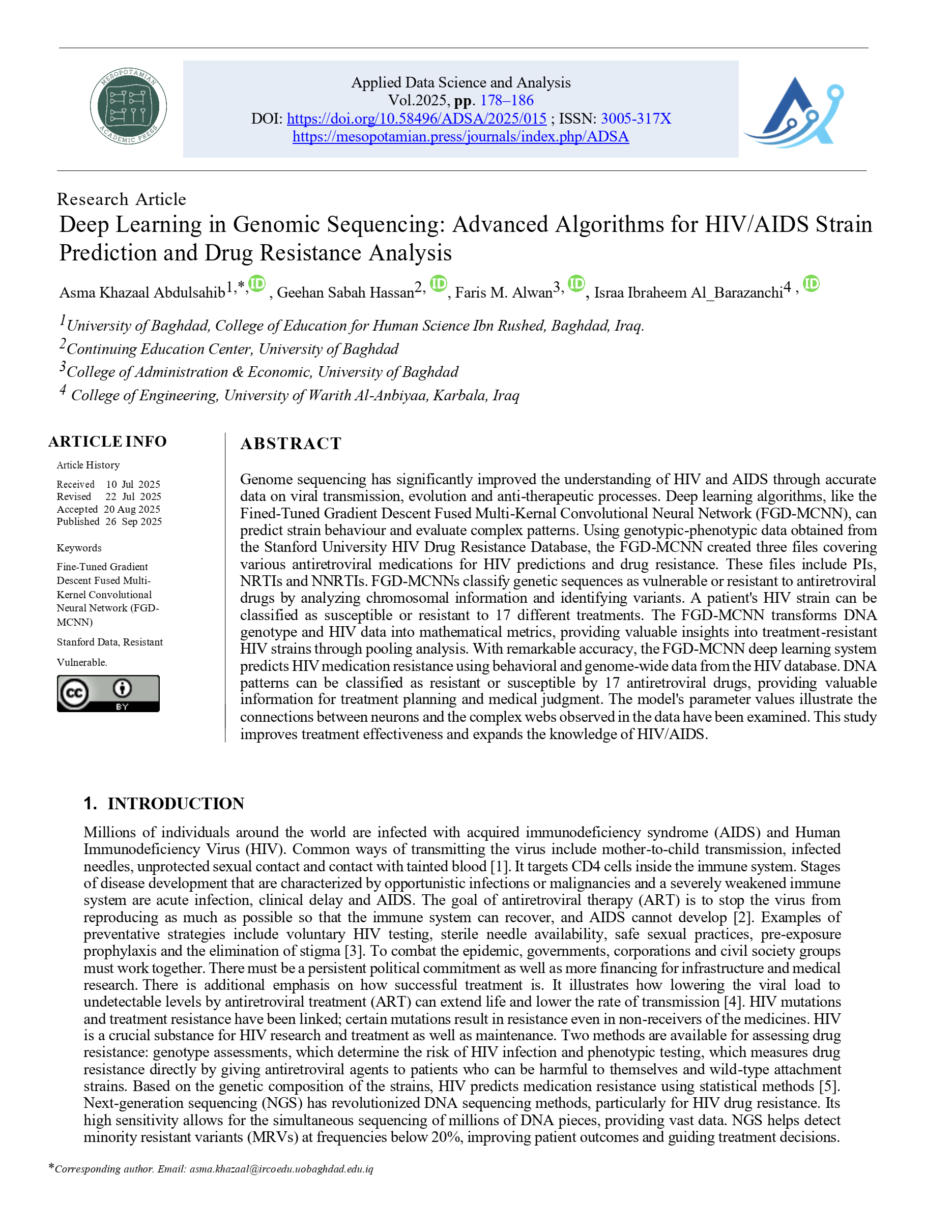 [11] H. Tunc et al., "Prediction of HIV-1 protease resistance using genotypic, phenotypic, and molecular information with artificial neural networks," PeerJ, vol. 11, p. e14987, 2023.