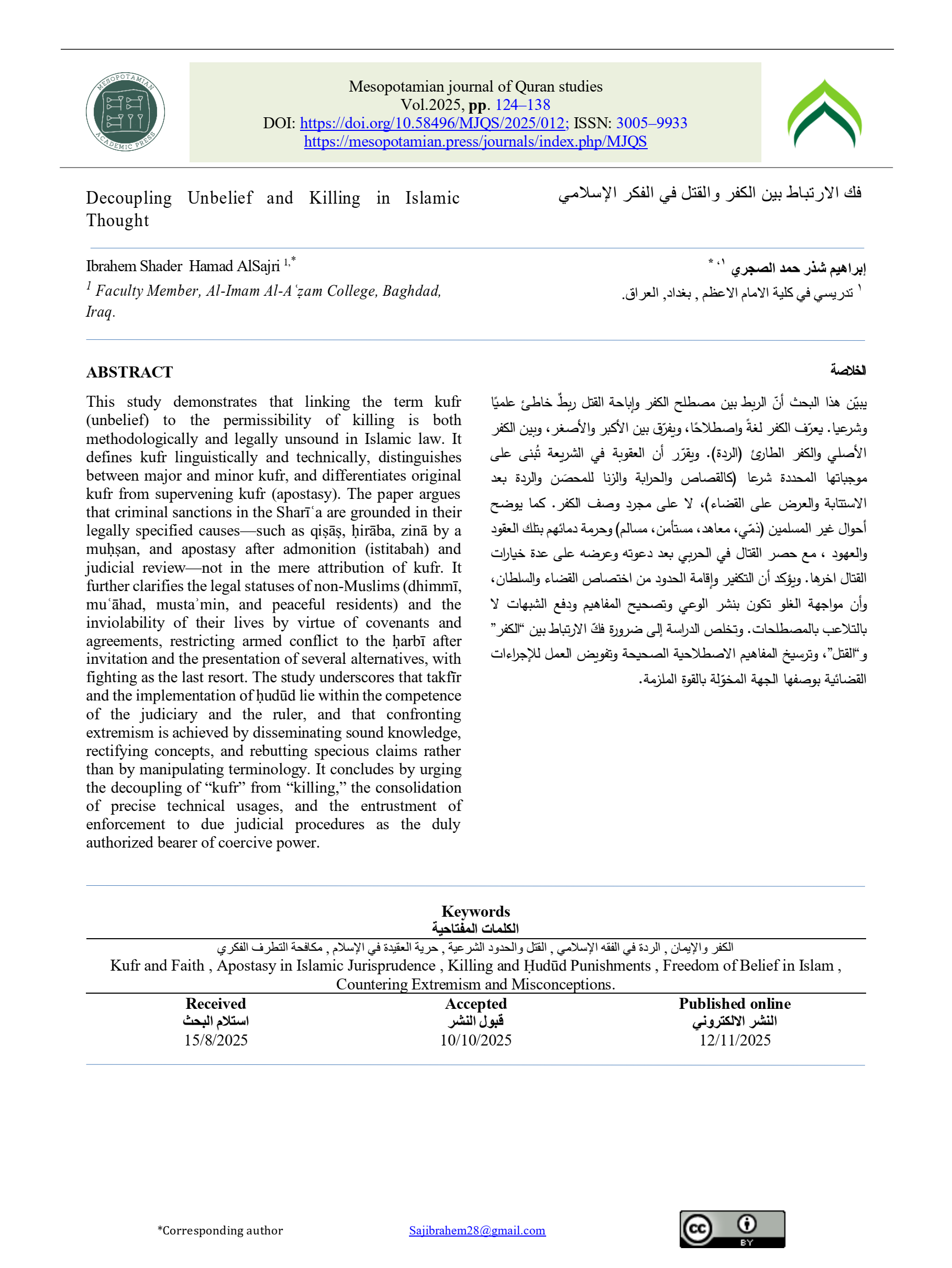 Mesopotamian Journal of Quran Studies! Our platform invites researchers and scholars in Quranic studies to share original research on interpretations, historical perspectives, language analysis, and the Quran's influence on ethics, literature, law, and more. Rigorous peer-review ensures academic excellence. Join us in exploring the Quran's significance. Stay tuned for our launch and contribute to this enlightening academic journey