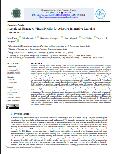 [17] Sudharson, D., Malik, R., Sathya, R., Vaishali, V., Balavedhaa, S., & Gautham, S. (2024). A Novel Adaptive Framework for Immersive Learning Using VR in Education. 1–26. https://doi.org/10.1002/9781394200498.ch1